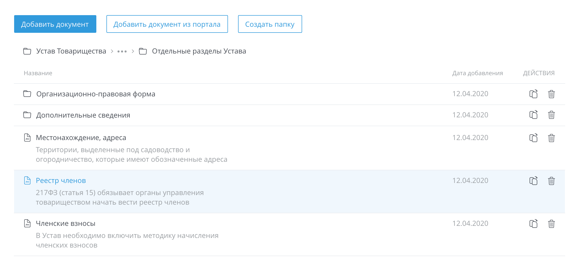 Специальный раздел, созданный для хранения и представления по запросу юридических и организационно-правовых документов СНТ: простая и удобная в использовании система каталогов.
